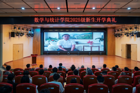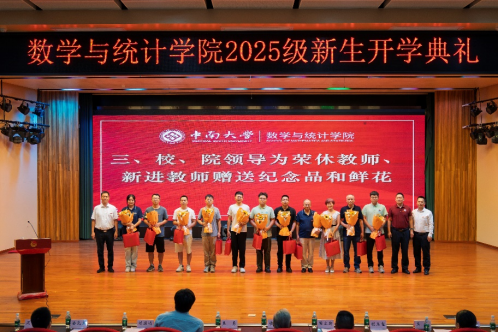 9月17日,数学与统计学院在毓秀楼和声堂举行2025级新生开学典礼暨老教师荣退、新教师入职仪式。校党委常委、副校长焦勇,著名数学家、“英国皇家戴维逊奖”和“华罗庚数学终身成就奖”获得者侯振挺,我院85级校友、特变电工衡阳变压器有限公司总经理、2025年“全国劳动模范”称号获得者周立新,宁德时代高级数据研究主任工程师林坤松以及学院党委书记胡玉玺、副院长(主持工作)刘源远、党委副书记杨雪宾、副院长潘克家、吴恋、周岳出席会议。学院全体2025级新生、辅导员、教师代表参加大会。