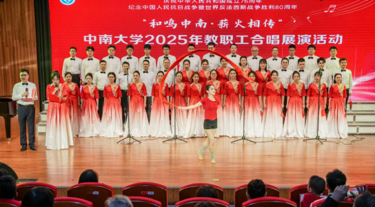在庆祝中华人民共和国成立76周年、纪念中国人民抗日战争暨世界反法西斯战争胜利80周年之际,中南大学于2025年10月25日在潇湘校区毓秀楼和声堂成功举办“和鸣中南·薪火相传”教职工合唱展演活动。数学与统计学院师生联袂出演的混声大合唱《我们走在大路上》在本次展演中荣获三等奖,以生动的艺术形式呈现了学院团结奋进的精神风貌。