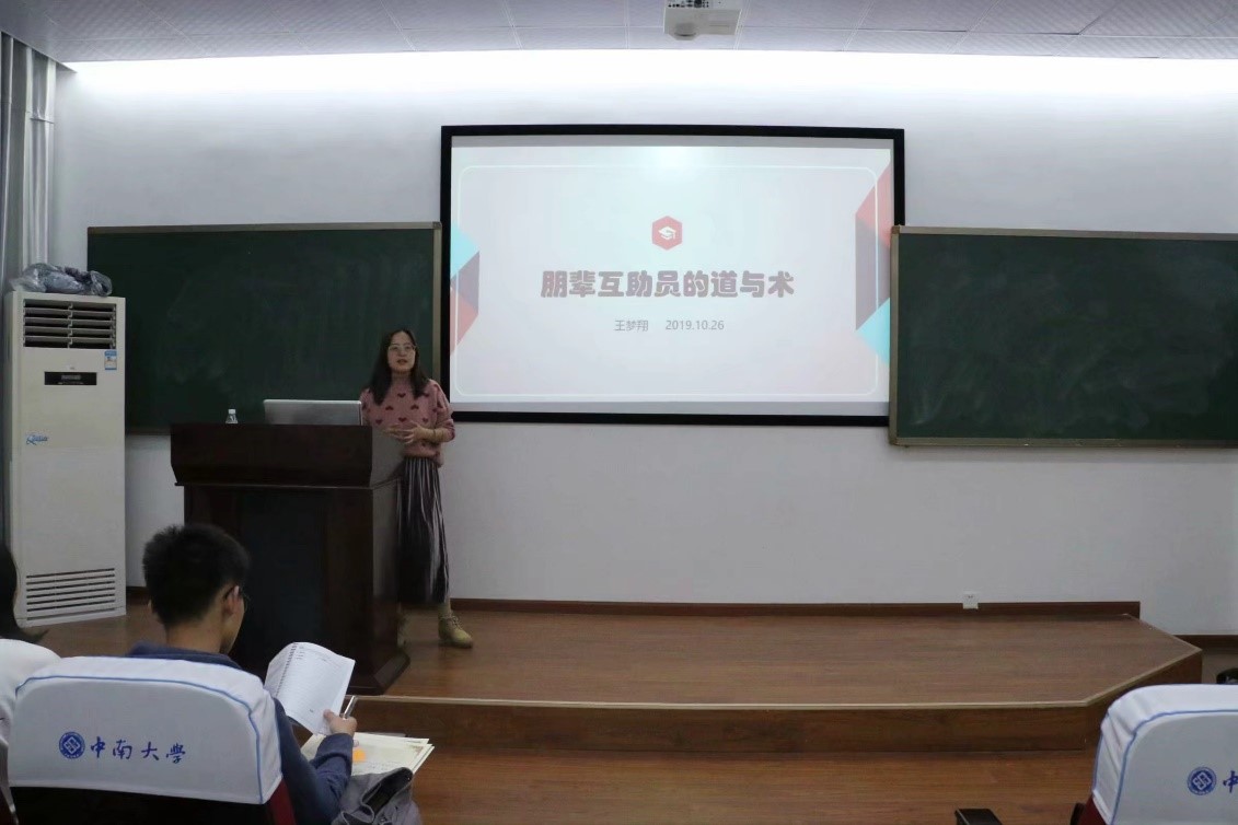 当前,大学生心理问题愈发突出,有序开展心理健康工作所起到的作用显得尤为重要。为此,心助会特别邀请中南大学解心团指导老师、心理健康教育中心王梦翔老师,于10月26日17:30在数理楼135报告厅为数统院全体心助队成员进行了主题为“朋辈互助员的道与术”的工作技能培训大会。