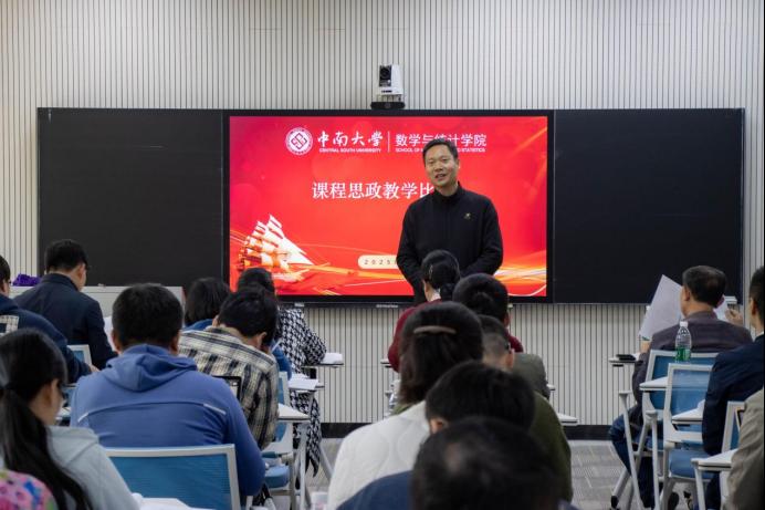 为深入贯彻习近平总书记关于教育的重要论述和全国教育大会精神,推动思政教育与专业课程有机融合,提高青年教师的业务能力和课程思政教学素养。4月2日下午,数学与统计学院在数理楼245智慧教室举办2025年课程思政教学比赛。校督导专家罗一鸣、刘常青和黄仁东受邀担任评委,来自各系所中心的8名教师参加比赛,学院党委书记胡玉玺、副院长周岳及教师代表观摩比赛,周岳副院长主持比赛。