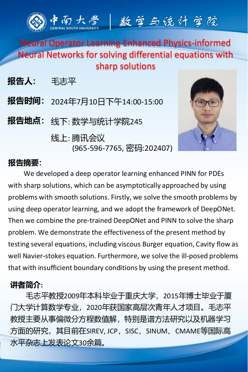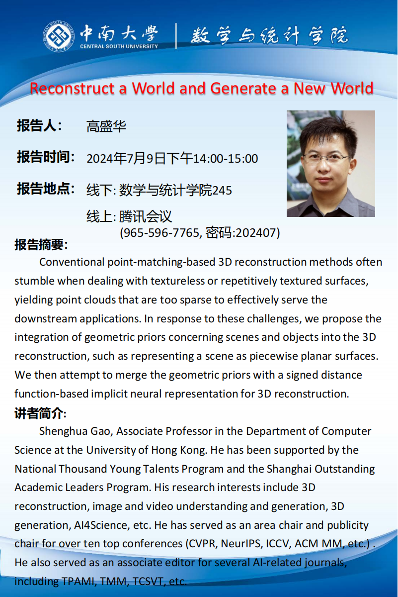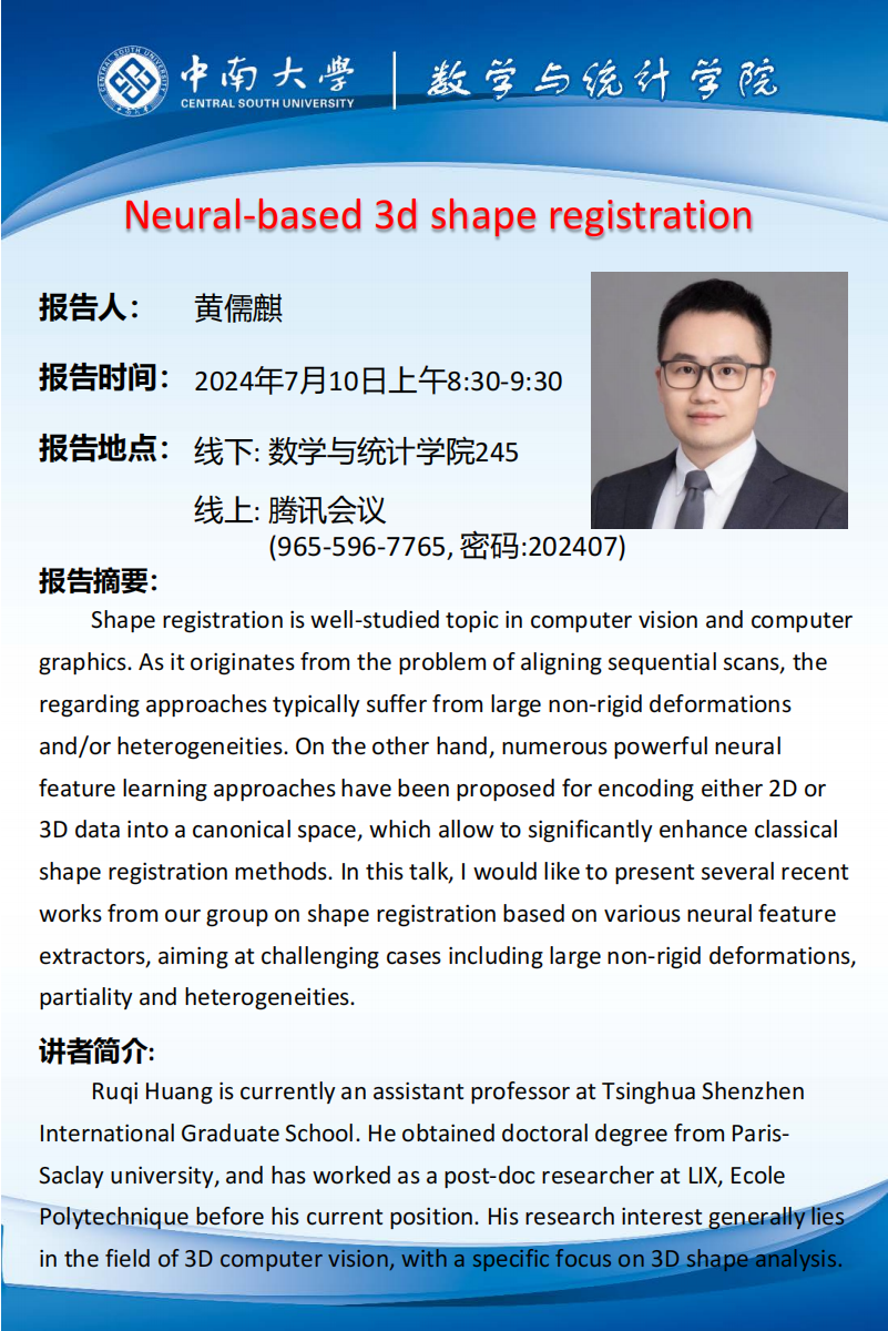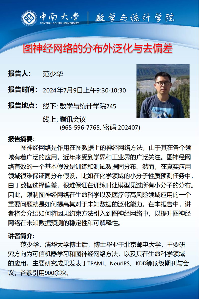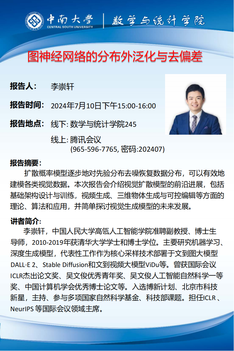 地 点:中南大学数学与统计学院245