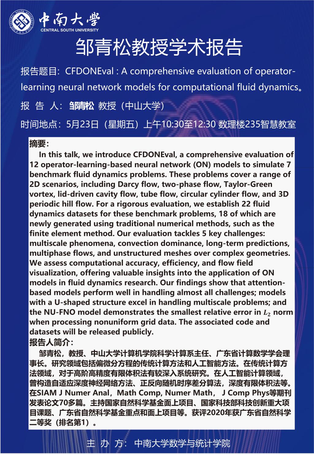 邹青松教授学术报告