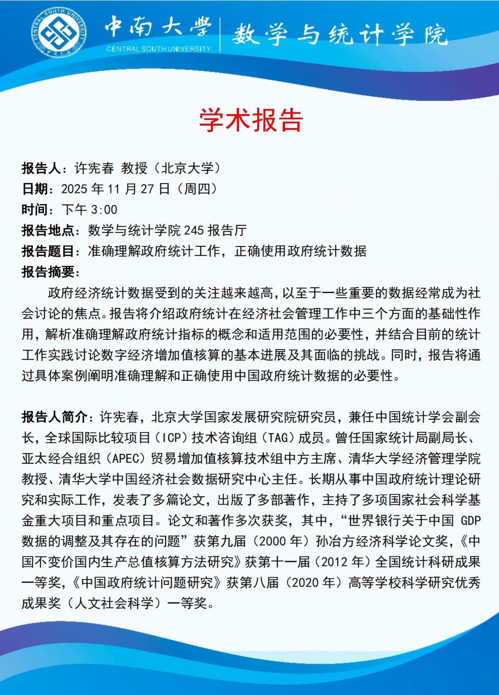 许宪春教授学术报告