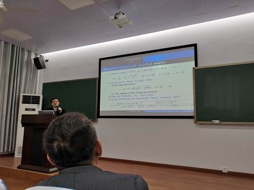 本次大会共有24场学术报告,大会特邀报告人包括澳门大学特聘教授金小慶教授、澳门大学数学系孙海卫教授、澳门大学数学系李兆隆教授、北卡州立大学李治林教授、北京应用物理与计算数学研究所袁光伟教授、印度理工学院Rajesh Pandey教授、湖南大学雷渊教授、湖南师范大学文有为教授、长沙理工大学刘仲云教授等数值代数与数值偏微分方程领域的众多知名专家学者。中南大学数学与统计学院向淑晃教授、郑洲顺教授、苗存强教授应邀作学术报告。聆听学术报告的还有我院计算数学方向的硕士研究生、博士研究生、留学生等二十余人。